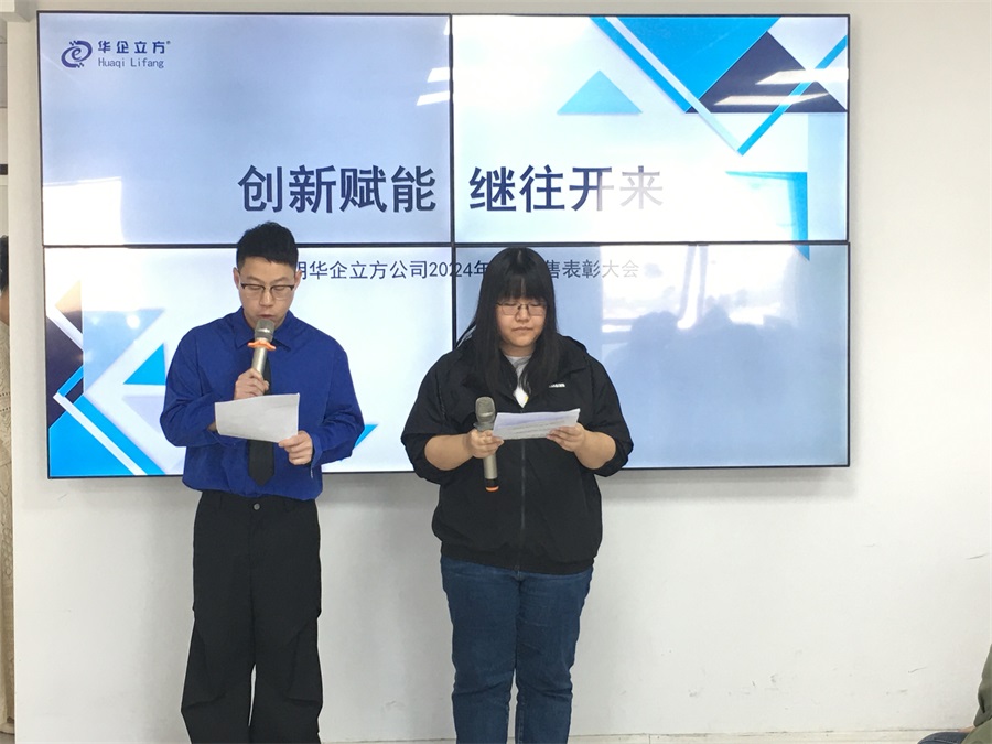 《创新赋能 继往开来》---江阴华企立方公司2024年4月销售表彰大会在5月13日上午8:15召开,担任本次大会主持的是技术部陆楹盈和向依婧。