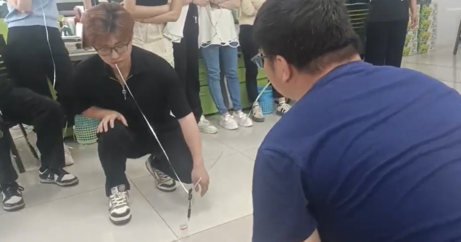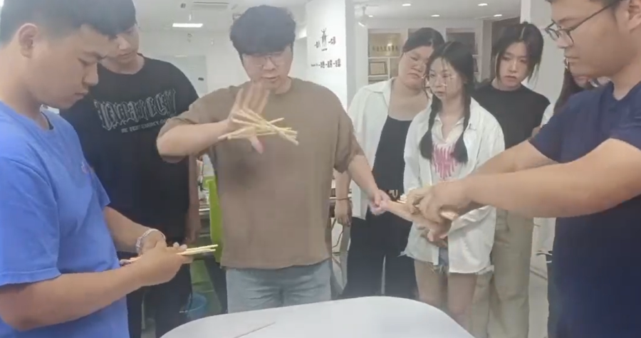 经过第一项比赛,大家慢慢找到了状态,第一项考验的是脚力,那么第二项考验的就是手的灵活度。抓筷子比赛乐趣多多,每人挑战10根筷子,分别从1根开始挑战,把筷子颠起来离开手背,并且快速用手掌抓住,视为成功,接着挑战两根,三根,直到10根筷子全部挑战成功。