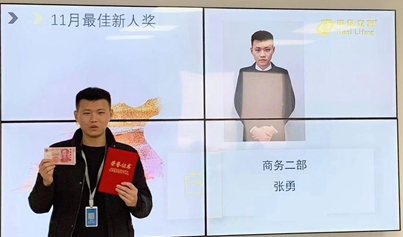 11月最佳新人是来自商务二部的张勇,他是华企未来的希望,工作态度认真,努力向上,希望之后能给公司带来更大的成就。